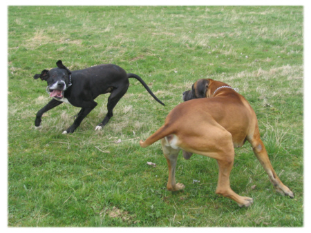 In der Regel hält sich meine Begeisterung für Zuchtschauen des Deutschen Doggenclubs stark in Grenzen. Wenn jedoch ein Richter wie der Präsident des Schweizerischen Clubs für Deutsche Doggen, Michael Neugel, die Hunde begutachtet, ist es immer wieder ein Vergnügen zuzuschauen. Es gelingt ihm wie keinem anderen, die Vorzüge des einzelnen Hundes hervorzuheben und nicht nur die Fehler aufzuzeigen. Er schafft es, dass jeder Aussteller mit dem schönen Gefühl aus dem Ring geht, sein Hund ist etwas ganz besonderes. Und so besuchten Quattro und ich heute als Zuschauer die Doggenschau in Wutha, bei der Herr Neugel als Richter tätig war. Für Quattro war das wieder einmal Aufregung pur, gab es doch so viele Hunde zu sehen. Dass er nicht mit den anderen spielen konnte, passte ihm jedoch überhaupt nicht, was er dann einige Male lautstark kundtat. Wer noch nie eine Deutsche Dogge kennengelernt hat, dem sei gesagt, dass eine Dogge nur sehr selten bellt, und selbst bei einer Anwesenheit von mehr als 100 Doggen auf einer Austellung kaum einmal ein Bellen zu hören ist. Quattro weiß scheinbar, wie man die Aufmerksamkeit auf sich zieht, auch wenn man nicht mitten im Ring steht.