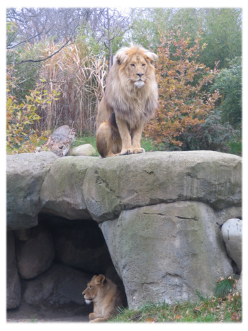 Zu meinem Geburtstag schenkte mir meine Familie eine Führung hinter die Kulissen des Zoos, so dass ich heute nun die Möglichkeit hatte, den Raubtierpfleger Jörg Gräser an seinem Arbeitsplatz, der Löwensavanne, zu besuchen und seine beiden Schützlinge, die Angolalöwen Matadi und Luena hautnah zu erleben. Auch wenn ich durch Lava und Quattro einiges an Größe gewöhnt bin, so war ich doch mächtig beeindruckt, als Matadi und Luena dann so nah vor mir standen. Die beiden sind zwei außergewöhnlich schöne Löwen. Leider kann die Zucht dieser seltenen Löwenart in Leipzig derzeit nicht fortgeführt werden. Luena hat bereits zweimal ein Jungtier verstoßen. Der 2004 geborene Löwe Malik wurde handaufgezogen und hat nun im Tierpark Chemnitz ein neues Zuhause und eine hübsche Löwendame gefunden. Das im Februar 2005 geborene Jungtier mußte aufgrund schwerer Verletzungen, die ihm Luena zugefügt hatte, erlöst werden. Da es in ganz Europa nur etwa 20 der seltenen Angolalöwen in Zoos gibt, die zudem miteinander genetisch verwandt sind und der Import einer wilden Katze aus Angola sehr schwierig ist, wird es in Leipzig in absehbarer Zeit keinen Löwennachwuchs geben.