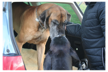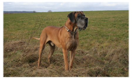 Für Lava stand heute ein Besuch in der Tierklinik Mühlhausen auf dem Programm. Da sie in den letzten Tagen immer wieder kurzzeitig ohne ersichtlichen Grund humpelte, hielt ich einen Tierarztbesuch für erforderlich, um der Ursache auf den Grund zu gehen. Außerdem hatte ich schon länger geplant, Lava einmal gründlich untersuchen zu lassen und dabei insbesondere einen Herzultraschall vornehmen zu lassen. Auch wenn sie noch ganz und gar nicht den Eindruck einer alten Dame macht, so darf man doch nicht außer Acht lassen, dass sie im nächsten Monat bereits das 8.Lebensjahr vollendet und Herzkrankheiten bei älteren Doggen sehr häufig auftreten. Wie ich bereits an anderer Stelle berichtet habe, hat Lava große Angst vor Tierärzten. Dies zeigte sich auch heute, als sie sich im Behandlungszimmer sogleich streikend in eine Ecke legte. Da halfen nicht einmal die gekochten Hähnchenherzen, die Lava in einer anderen Umgebung mit Genuss verschlingt. Für den Herzultraschall war es jedoch erforderlich, Lava auf einen Behandlungstisch zu heben, was sich angesichts einer 75kg schweren und streikenden Dogge als der schwierigste Akt herausstellte. Aber zu viert war auch das möglich, und oben auf dem Tisch angekommen wurde Lava zu zunehmend ruhiger, was nicht zuletzt auch an Tierärztin Frau Ruppe-Puy und ihren Kollegen lag, die sich viel Mühe gegeben haben, damit Lava sich wohlfühlt.