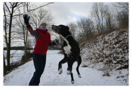 Heute trafen wir uns zum Neujahrsspaziergang mit Christine und Bruno. Wir hatten die beiden schon lange nicht gesehen, da Bruno sich bei einem Sturz das Bein verletzt hatte und sich über einen längeren Zeitraum schonen musste. Umso mehr freuten wir uns heute, ihn wieder vergnügt über die Wiesen rennen zu sehen.