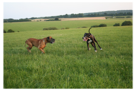 Bis zu 38 Grad warm war es in den letzten Tagen und Wochen, und bislang ist kein Ende dieser Hitzeperiode in Sicht. Selbst in den Abendstunden warten wir vergeblich auf eine Abkühlung. Die Hitze macht auch Lava und Quattro zu schaffen. Deshalb bekommen sie von mir als Erfrischung gekühlten Naturjoghurt mit frischen Früchten und Honig. Ich hätte nicht gedacht, dass ich damit ihren Geschmack treffe, denn normalerweise rümpfen die beiden bei Früchten die Nase und würden beispielsweise ein Stückchen Banane allein nicht anrühren. In Kombination mit dem Joghurt werden sie jedoch zu begeisterten Obstfreunden, und während der Zubereitung der Mahlzeit sitzen sie jedesmal schon voller Erwartung vor der Küche.