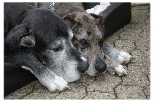 Wie sehr Quattro die Gesellschaft eines anderen Hundes fehlt und wie ruhig er in den letzten Wochen gewesen war, ist mir erst richtig bewußt geworden, als uns Alexandra und Chanel besucht haben. Quattro war sichtlich überrascht, als Chanel plötzlich vor dem Gartenzaun stand und ihn freudig begrüssen wollte. Als er sie erkannte, war er wie ausgewechselt. Er spielte und rannte vergnügt mit ihr und liess sie nicht aus den Augen. Später kuschelte er sich so an sie, dass es Chanel auf Dauer schon etwas nervig wurde. An diesem Tag wurde mir klar, dass Quattro einsam ist.