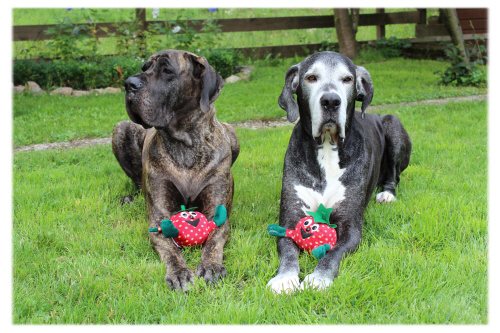 Zu jedem Ostseebesuch gehört für mich ein Besuch in Karl`s Erlebnisdorf in Rövershagen. Dort dreht sich alles rund um ein beliebtes Früchtchen: die Erdbeere. Neben frischgekochter Erdbeermarmelade aus der Marmeladenküche oder dem leckeren Erdbeerwein habe ich dort vor einiger Zeit Karl`s Plüscherdbeere als perfektes Hundespielzeug entdeckt, das mittlerweile nicht nur Ava und Quattro lieben. |