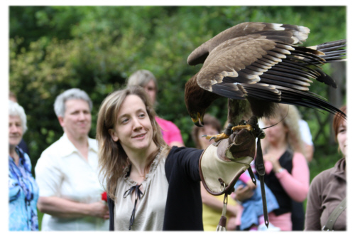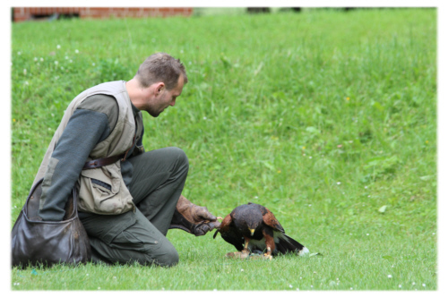 Als Überraschung für unsere Gäste besuchte uns der Falkner der Greifenwarte am Rennstein, Elias Schubach, mit einigen seiner gefiederten Freunde. |
