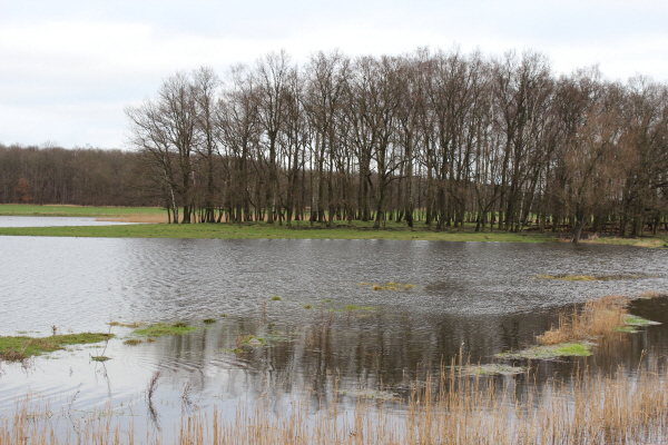 Dies ist kein See, sondern eine Wiese, auf der normalerweise Kühe weiden. |