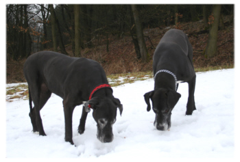 Quattro ging heute wieder einmal in Begleitung der neunjährigen Dogge Elly spazieren. Diesmal haben sie gemeinsam den Naturpark Meißner erkundet, in dem es von Wildspuren nur so wimmelte. Die Nasen der beiden kreiselten ständig auf dem Boden. Doch Meister Lampe oder andere Waldbewohner bekamen wir nicht zu Gesicht.