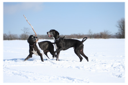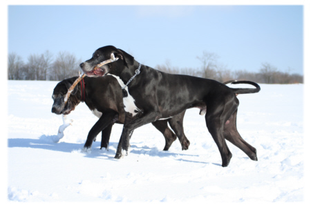 Zur Feier des Tages gab es heute einen großen Kalbsknochen zum Knabbern für Lava und Quattro. Ich kann dann darauf warten, dass die beiden nach einer Weile ihre Knochen “tauschen”. Dieses Ritual vollziehen die beiden jedesmal, und man hat dann das Gefühl der angenagte Knochen des anderen erfreut sie mehr als der eigene.