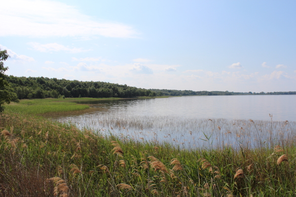 Aber da wir nun wußten, wo man die größten Chancen hat, Seeadler zu beobachten, radelten wir am nächsten Tag auf eigene Faust zum Rederangsee und warteten erneut. Und wieder warteten und warteten wir. Und obwohl ich die ganze Zeit mit dem Fernglas die Baumwipfel ringsum abgraste, habe ich ihn nicht kommen sehen. Plötzlich war er einfach da und kreiste mitten über dem See: der König der Lüfte. |