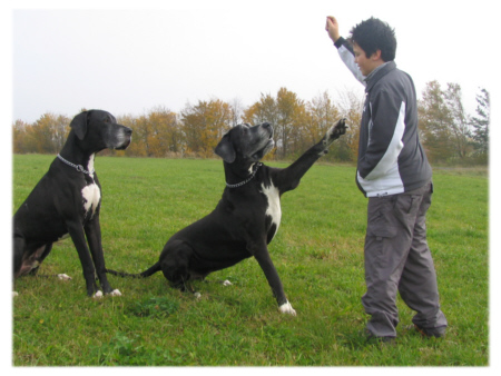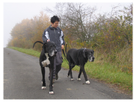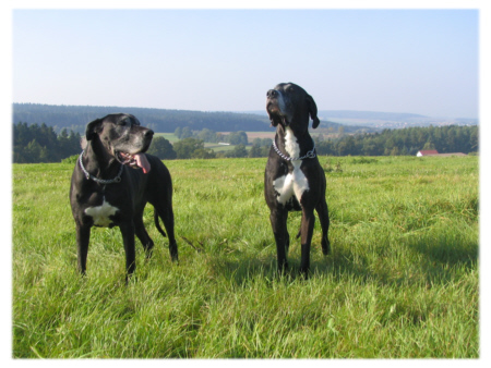 Quattro und ich besuchten heute Alexandra und ihre Dogge Elly in Kassel. Elly feierte im September ihren 9.Geburtstag. Was viele Hundefreunde anderer Rassen nicht wissen, für eine Deutsche Dogge sind 9 Jahre ein bemerkenswertes Alter. Doggen im Alter von zehn oder gar elf Jahren sind in der heutigen Zeit eine Seltenheit und schon wahre Methusalems ihrer Rasse. Auch wenn lange Spaziergänge aufgrund ihrer Herzkrankheit zu anstrengend sind für Elly, so genießt sie doch kürzere Ausflüge in vollen Zügen. Und wer denkt, Elly läuft ganz gemächlich ihre Runden, der irrt sich gewaltig. Auch im zehnten Lebensjahr ist sie noch für einen Sprint zu haben.
