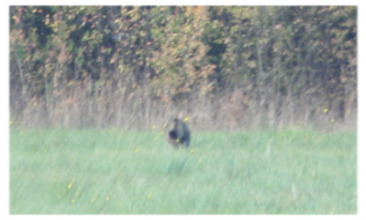 Auf dem Rückweg hatten wir das Glück, eine Wildkatze zu Gesicht zu bekommen. Leider blieben uns nur Sekunden, bevor das scheue Tier uns bemerkte und in den Wald floh. Daher gelang mir nur dieser flüchtige Schnappschuss: