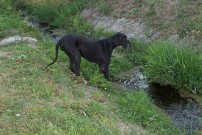 Dann endlich kam ein Wiener Auto daher, und ich wusste gleich: das muss meine Yana sein! Und siehe da, heraus kam eine hübsche schwarze Doggendame, die die Ähnlichkeit mit mir wirklich nicht abstreiten konnte. Stürmisch wie ich bin, bin ich gleich auf Yana zugerannt, um sie zu begrüßen und kassierte gleich mal ein Brummen von Yana. Wie große Schwestern eben so sind, dachte ich mir, sie wollen immer, dass sich die Kleinen ordentlich benehmen. Also war ich einfach nicht ganz so stürmisch-ich wollte ja einen guten Eindruck auf Yana machen. Margit und Thomas habe ich gleich ins Herz geschlossen, sie hatten mir sogar extra einen großen Leckerbissen mitgebracht, den ich abends im Lokal gleich mit Vergnügen verspeist habe. Peter, der Onkel, der mich immer “Audi” ruft, war auch dabei.