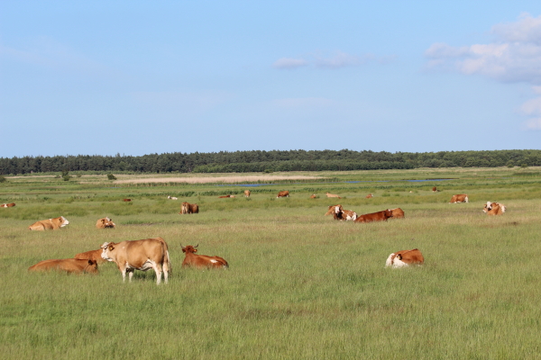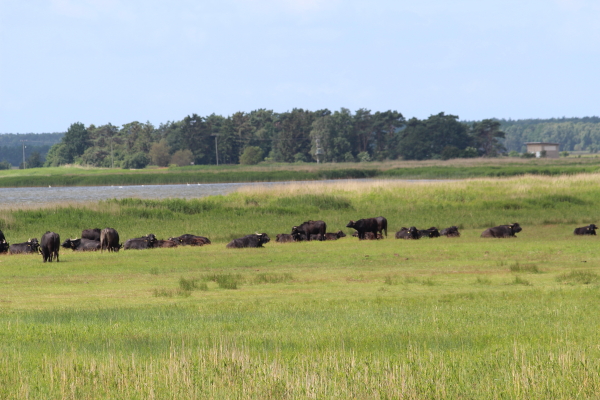 Zum Abschluss noch einige Fotos aus dem Leben glücklicher Kühe. Es ist eine wahre Freude zu sehen, wie gesund und fit die Rinder ausschauen und wie die Jungtiere inmitten der Herde aufwachsen. Trotz oder vielleicht gerade wegen meines neuentdeckten Faibles für Kühe muss ich gestehen, dass mir ein Steak auf dem Darß einfach immer wieder besonders gut schmeckt.